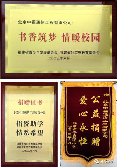 北京中福通信工程有限公司積極響應(yīng)國家“關(guān)心下一代健康成長”的倡導(dǎo),持續(xù)開展“捐書助學(xué) 愛心筑夢”活動。今年,通過福建省慈善總會向福清市三山瑟江小學(xué)捐獻(xiàn)2萬元購書款,讓莘莘學(xué)子感受黨的關(guān)懷和社會主義大家庭的溫暖。